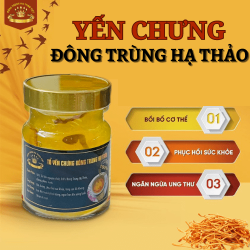 - 50% Tổ Yến nguyên chất, 10% Đông Trùng Hạ Thảo, đường phèn, nước tinh khiết, calcium lactate, không chất bảo quản, không chất hóa học và được sản xuất trên công nghệ đảm bảo vệ sinh an toàn thực phẩm, do đó người dùng có thể hoàn toàn yên tâm trong quá trình sử dụng.